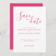 Cette invitation de mariage minimaliste et moderne Save the Date comporte une police de script élégante et belle complétée par un texte moderne en rose vif sur le devant de l'invitation. Ce morceau est prêt pour vous à customiser avec les détails de votre journée spéciale. Faisant partie d'une collection en constante croissance, veuillez consulter la collection Elegant Pink Floral Watercolor Mariage Collection pour obtenir des articles correspondants.