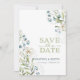 Save The Date Mariage élégant, fleurs vertes et blanches