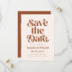 Rétro et élégant enregistrer la carte de date avec la police boho qui dit "enregistrer la date" en couleur terre cuite. Vous pouvez ajouter une photo au dos.