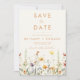 Ce design allie élégance et fantaisie, alliant un texte moderne minimal à une rangée de fleurs sauvages d'aquarelle délicats, parfaits pour les mariages d'inspiration boho.