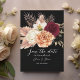 Annoncez votre mariage dans le style avec cet élégant bordeaux et noir enregistrer la carte de date. Doté de fleurs moody watercolor en bordeaux, bleu et ivoire, il donne le ton parfait à un mariage de automne romantique et rustique. L'écriture moderne et le design botanique ajoutent un charme intemporel.