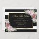 Elégant mariage floral rayé noir et blanc enregistrer la carte de date avec des fleurs rose vif encadrant les détails mariages à l'intérieur d'un cadre doré contre un arrière - plan noir et blanc. Mariage noir et or enregistrer la carte de date. Éléments correspondants disponibles.