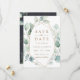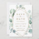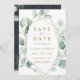 Ce mariage sauve la date d'invitation caractéristiques peint aquarelle eucalyptus et feuilles vert botanique avec un cadre géométrique or.