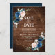 Save The Date Mariage géométrique en bois rustique bleu marine r