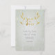 Jolie feuille d'or, effet de feuille d'or sur arrière - plan vert sauge, forme un cadre extraordinaire sur ces cartes de jour de mariage Save-The-Date. Parfait pour les thèmes mariages de style or, et beaucoup d'autres paramètres. Ajoutez simplement vos propres détails dans la zone de modèle ci-dessus à droite, et si vous avez besoin de modifications supplémentaires, cliquez sur le bouton "Customiser" ci-dessus. Veuillez noter qu'il s'agit de cartes plates, imprimées, et l'effet feuille d'or est une image de haute qualité de notre propre design. Des invitations de mariage, des RSVP, des cartes de numéro de table, des timbres-poste et des cartes de remerciement sont disponibles.
