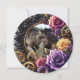 Un magnifique charmant steampunk floral Save the Date card. Le devant est orné de beaux roses violets, des engrenages or et cuivre et un modèle pour télécharger votre photo préférée. Il est fait dans les tons or, violet et noir et a une esthétique gothique. Ajoutez toutes vos informations de mariage de date à l'arrière dans la zone de personnalisation.