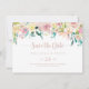 Ce mariage horizontal rose à ressort doré, sauf la date, est parfait pour un mariage rustique. Le design présente une multitude de pivoines colorées et de feuillage vert, soigneusement groupés en bouquets de charme, inspirant la beauté naturelle.