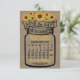 Ces mariages de calendrier rustique mars 2023 enregistrer la date des cartes ont un cadre de bocal de mason, une bannière, et tournesols aquarelle, le tout sur un arrière - plan faux burlap. Ces cartes simplement élégantes sont parfaites pour un thème mariage campagnard. Mettez en surbrillance votre date de mariage avec l'icône du coeur. Utilisez les modèles faciles pour ajouter les noms de mariée et de mariée, la date, l'emplacement, et plus encore. CONSEIL : Voulez-vous modifier le reste du texte ou déplacer le coeur vers une autre date ? "Customisez plus loin" pour apporter des changements plus détaillés.