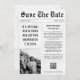 Annoncez votre histoire d'amour avec une touche moderne dans un style intemporel. Cette sauvegarde à jour inspirée du journal comprend une photo personnalisée et un design élégant en noir et blanc, associé à un code QR scannable pour un accès facile aux détails de votre mariage. Mélange de charme classique et d’élégance minimaliste, c’est la façon idéale de partager vos nouvelles passionnantes d’une manière abordable et inoubliable.