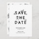 Cette carte Save the Date présente un design amusant en noir et blanc, avec des icônes sur le thème du mariage intégrées dans le lettrage. Il met en valeur les noms du couple et leur date de mariage, dans un agencement moderne et épuré. Simple et élégant avec une touche ludique.