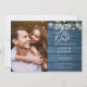 Ce rustique enregistrer la carte de date comporte des lumières à cordes, votre photo spéciale et la typographie élégante sur un arrière - plan de panneaux de bois bleu rustique. Conçu par Thisisnotme©