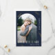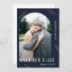 Elégant bleu foncé une photo avec grand mariage typographique enregistrer la date faire-part. Cette faire-part moderne est ornée d'une photo en arc de cercle et d'une belle et simple impression de feutre doré. Veuillez consulter cette collection de mariages tendance pour coordonner les invitations de mariage et les options de couleurs chic supplémentaires.