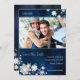 Élégantes fleurs de neige, flocons de neige et volutes florales en blanc + fond bleu marine rustique illustré sur des cartons d'invitation de mariage personnalisés avec photo. Cartes de mariage hivernales festives et fantaisistes que vous pouvez entièrement personnaliser avec votre propre texte et image. Idéal pour votre prochain MARIAGE D'HIVER GLAMOUR | MARIAGE INDIGO & BLANC | MARIAGE BOHÈME CHIC D'HIVER ou MARIAGE CONTE DE FÉES Hivernal RUSTIQUE ! ((Vous pouvez trouver les éléments de mariage assortis et les faveurs dans cette boutique, Bridal Heaven. Contactez ujean4791@gmail.com pour un travail personnalisé et/ou de la papeterie de mariage coordonnée.))