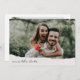 Laissez votre amour briller avec cette belle simple carte Save the Date. Doté d'une mise en page pleine photo accentuée d'un effet de papier déchiqueté réaliste et d'un script délicat écrit à la main, ce design est idéal pour les couples qui veulent une touche moderne et romantique. L'esthétique douce et le style minimaliste s'adaptent bien aux mariages en toute saison, surtout pour les célébrations en plein air, rustiques ou décontracté-chic. Personnalisez avec votre photo préférée et votre texte personnalisé pour en faire la vraie vôtre.