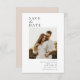 Cette sauvegarde de la carte de date comporte un script élégant et des polices serif avec un modèle photo correspondant au centre. Cette pièce est parfaite pour un thème de mariage chic, minimal et élégant. Personnalisez ce fichier enregistrez la carte de date avec la photo du couple, les noms et la date du mariage.