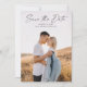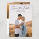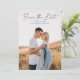Modern Script Photo Wedding Enregistrer la carte Date. Le dos comprend une deuxième photo avec des détails supplémentaires. Cliquez sur le bouton Modifier pour customiser cette conception avec vos photos et les détails du mariage.