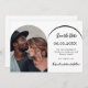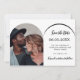 Une photo Enregistrez la carte de date pour votre mariage. À l'avant : Ajoutez votre propre photo de taille verticale à l'intérieur du cadre photo en arc. Un arrière - plan blanc chic, du texte noir. Modèles pour les noms et la date. Le nom et le texte : Save the Date sont écrits avec un script de style manuscrit moderne. Retour : vous pouvez ajouter du texte si vous le souhaitez. Accédez à l'outil de conception et ajoutez-y le calque arrière.