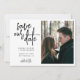 Mariage photo minimaliste fiançailles enregistrer la date en noir simple et blanc clair avec un script moderne de calligraphie manuscrite. +++++++++++++++ Convient pour le printemps été automne automne ou hiver élégants mariages à thème modernes.