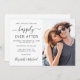 Un mariage moderne sauve le faire-part de date avec votre photo et "Happily Ever After" dans un mélange de typographie simple et un script élégant avec des swashes. Personnalisez votre enregistrement des détails de la date et ajoutez vos noms dans un script de type signature. Au dos, vos noms et votre date de mariage sont réunis par un coeur.