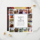 Un mariage très spécial mais moderne Enregistrer la carte Date à envoyer à la famille et aux amis annonçant la date de votre mariage! L'avant du design comprend 16 photographies carrés de votre choix avec vos noms et date de mariage. Au verso se trouve une grande photographie et une superposition avec le texte "Future Mr & Mrs ADD NAME et la date".