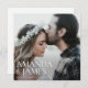 Ce mariage photo tout simplement chic sauvegarder la carte à plat date a un design moderne et minimaliste. L'avant affiche vos prénoms au-dessus de votre date et de la locale mariage en blanc. Sur le dos, nous avons mis l'arrière - plan comme transparent, de sorte que la couleur du papier servira simplement de tonalité de base. Vous pouvez choisir une couleur pour l'arrière - plan si vous préférez. Vous pouvez également modifier le texte en fonction de vos besoins. Vous pouvez vouloir supprimer un champ de texte dont vous n'avez pas besoin, ou modifier la couleur ou la police d'un texte. Nous avons choisi un ton gris pour le texte à l'arrière. Utilisez les outils de design intuitifs, votre photo préférée et votre inspiration pour faire de ce mariage élégant enregistrer la carte à plat date uniquement la vôtre!