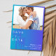 Un mariage moderne sauvez les dates dans un design de palmier bleu foncé inspiré de la plage avec votre photo personnalisée, parfait pour votre mariage sur la plage. Si vous avez besoin d'aide pour recadrer votre photo ou si vous souhaitez plus de personnalisation, contactez-moi par l'intermédiaire de mon magasin. J'adorerais aider.