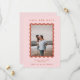 Un mariage branché enregistrer le faire-part de date avec votre photo préférée dans un cadre de pétoncle ondulé en terre cuite sur un arrière - plan rose vif et texte en terre cuite.