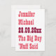 "Mariée. Marié. Date du mariage. Le grand jour. 'C'est tout dit.' Une carte d'invitation de mariage personnalisée, drôle, amusante, cool, blanche et simple pour annoncer la date de votre mariage. Personnalisez la carte avec la date de votre mariage, le lieu de la cérémonie (ville et état), ainsi que les noms de la mariée et du marié. Une invitation 'save the date' idéale, drôle, originale, hilarante et humoristique pour tous vos amis, votre famille et vos proches. Une invitation amusante pour la mariée et le marié à envoyer en tant que couple.