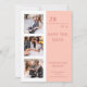 Mariage simple Enregistrer la date Photo Picture Invitations comprend quatre de vos photos préférées, trois sur le devant et un au verso avec le texte "Save the date" dans élégante typographie de script rose moderne sur un fuzz pêche et un arrière - plan blanc. Simple, moderne et élégant pour la célébration de votre mariage. Conçu par ©Evco Studio www.zazzle.com/store/evcostudio
