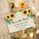 Marquez vos calendriers et laissez l'amour fleurir avec nos cartes "Sunshine & Sunflower Wedding Save the Date". Ces savoureuses cartes de dattes présentent des tournesols gais, symbolisant la joie et l'optimisme, parfait pour annoncer votre date mariage. Personnalisez les cartes avec vos noms, votre date de mariage et votre emplacement. Faites passer le soleil en annonçant votre prochaine célébration parce que votre histoire d'amour mérite un bon début !