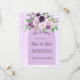 Un moderne et élégant Save the Date pour un mariage. Violet aquarellé, arrière - plan lavande et arche. Décoré de fleurs violettes et violettes. Personnalisez et ajoutez une date et des noms. Le texte : Save the Date est écrit avec un grand script de style à la main tendance. Retour : ajoutez votre URL à votre site Web mariage pour plus d'informations.
