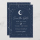 Une lune céleste et l'étoile thème enregistrer la carte de date avec un arrière - plan de marine sombre et texte blanc avec des éléments. Customisez la couleur de l'étoile motif, arrière - plan, remplissage d'arc et élément lune!