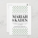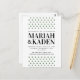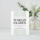Kleine, waldgrüne Dreiecke über einem weißen Hintergrund machen dieses minimale Ankündigung Datum freihalten zum idealen Ort, um Ihre Gäste zu Ihrer Hochzeit im Freien einzuladen! Moderne und elegante Schriften behielt diese Einladung einfach und sauber, während die Dreiecke Berge oder Bäume darstellen können. Personalisieren Sie die Einladung, indem Sie ein Foto auf der Rückseite, sowie alle Ihre Hochzeitsinformationen.