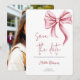 quinceañera minimaliste enregistrer la date une illustration d'un arc rose sur le devant. Vous pouvez ajouter sa photo au verso de la carte. Illustré et dessiné par Patricia Alvarez.
