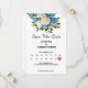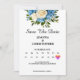 Erzählen Sie Ihren besonderen Tag stilvoll mit unserem personalisierten dustigen Blau und Elfenbein Save the Date. Diese elegante Karte mit einer wunderschönen Aquarelldarstellung von Rose ist ideal, um Ihrer Hochzeitsplanung eine romantische Touch hinzuzufügen. Passen Sie Ihre Namen und Ihre Hochzeitsdetails an.