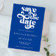 Save The Date Modern Cobalt Blue Retro Typography Wedding