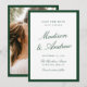 Announce your wedding with this dark green photo save the date card, designed with a rich, classic border and an elegant typographic layout. The couple’s names are featured in flowing calligraphy script, paired with refined serif lettering for the date, venue, and location, creating a formal yet romantic presentation. The back displays your engagement photo framed in coordinating green for a cohesive, editorial look. Perfect for estate weddings, garden venues, black tie celebrations, and traditional ceremonies, this personalized green save the date coordinates beautifully with classic wedding invitation suites and offers a sophisticated way to share your wedding date.