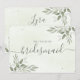 The design features a dreamy, romantic script asking the big question, framed by organic botanical accents that feel fresh and timeless. The back or interior offers a clean, minimalist layout perfect for a heartfelt personal note. Whether you’re tucking this into a curated bridesmaid proposal box or handing it over during a celebratory brunch, this card is a sophisticated way to begin your wedding journey with your bridal party.