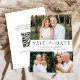 Élégant, multi-photo enregistrer la date avec "Save the Date" affiché en lettres noires avec un arrière - plan blanc. Personnalisez le QR moderne enregistrez la carte de date avec 3 de vos photos préférées, vos noms, date mariage et emplacement du mariage. Le simple enregistrement de la date inverse pour afficher votre code QR personnalisé avec le site Web mariage et le texte personnalisé.