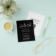 Budget Minimalistische Elegant Black Modern Typografy Script preiswert HochzeitQR Code Save the Date Flyer. Dieses delikate Design perfekt für moderne Hochzeiten. Enthält skurrile handgeschriebene Schriftart-Kalligraphie oder Typografie-Skript und einen QR-Code, der zu Ihrer Hochzeitswebsite führt. Einfach zu personalisieren mit Ihren Hochzeitsdetails. Niedrig günstig Save the Date Hochzeit Flyer.