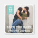 Moderne, aber mit einem rustikalen Flair, ein Foto des schönen Ehepaares füllt den Rahmen, und ein trendiger aqua aquamariner Banner hält den Monat, Tag und Jahr des Hochzeitstages. Ein perfekter Magnet für lassend Gäste, die über die Verlobung und den Hochzeitstag Bescheid wissen.
