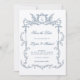 Ce mariage baroque Orné Bleu Français, sauf la date, présente un cadre de monogramme antique d'art sur un arrière - plan blanc. Un design élégant que toute mariée sophistiquée aimera.