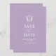 Annoncez votre fiançailles avec ce monogramme mariage enregistrer les invitations de date. Ils présentent les initiales monogrammées de la mariée et du marié dans une crête élégante sur un arrière - plan lilas solide. Utilisez les champs modèle pour ajouter votre texte personnalisé. Un choix élégant pour les douches mariages et nuptiales. Pour voir la suite de faire-part de mariage complète visitez www.zazzle.com/dotellabelle