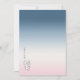 L'arrière - plan de toutes les pièces de cet ensemble mariage est un dégradé de couleurs qui attire l'oeil du bleu prussien au rose et blanc doux. La carte mariage "Save the Date" présente un design moderne et élégant et une police sans serif contemporaine pour ajouter à son élégance sobre. Ajoutez facilement vos noms et votre date de mariage à l'aide du modèle fourni. Recherchez ID741 pour voir l'ensemble complet des produits correspondants dans Ciel prussien ou choisissez l'une des autres combinaisons de dégradé disponibles pour convenir à votre palette de couleurs mariages.