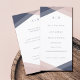 Un design moderne et chic avec des formes géométriques qui se chevauchent pour créer différentes nuances de rose et de bleu sur un arrière - plan blanc pur avec un simple monogramme. L'invitation correspondante est disponible à l'adresse suivante : https://www.zazzle.com/blush_navy_monogram_geometric_modern_chic_wedding_invitation-256922893679510831