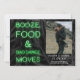 Un cool et décontracté sauvez la date, avec le panneau vert néon disant, booze, nourriture & mauvaise danse bouge sur le palmier noir feuille arrière - plan tropical. ajoutez une de vos photos préférées.
