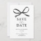 Ces cartes de save the date de mariage présentent un fond blanc simple, un nœud aquarelle noir classique et un modèle de texte élégant facile à personnaliser.