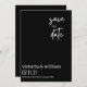 partagez la grande nouvelle de votre mariage avec cette carte de save the date moderne et tendance, en noir élégant et texte blanc élégant