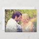 Annoncez votre changement mariage de date dans le style avec ces élégantes enregistrer les cartes d'annonce de date qui mettent en vedette votre photo fiançailles avec un script de calligraphie moderne "Notre nouvelle date" superposition design. Inclut le libellé à l'avant et à l'arrière de la carte qui peut être personnalisé avec tous les détails importants.