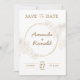 Faites une première impression saisissante avec la carte "Save the Date" de mariage élégante à motif floral or blanc. Avec son design floral blanc exquis complété par des accents dorés scintillants, cette carte établit magnifiquement le ton pour vos prochains noces. L'esthétique minimaliste mais luxueuse garantit que votre annonce soit à la fois intemporelle et captivante.